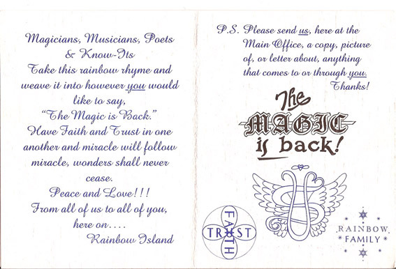 Greeting card with LSD tab (no longer attached) dropped onto the festival site from airplane by Johnny Gale of the Brotherhood Of Eternal Love