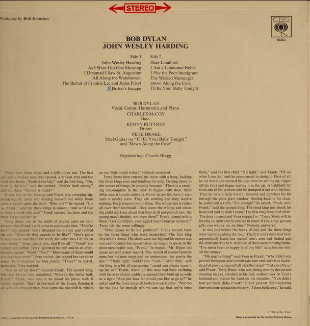 So John Wesley Harding has been on the turntable for a few days now and this is a preliminary report