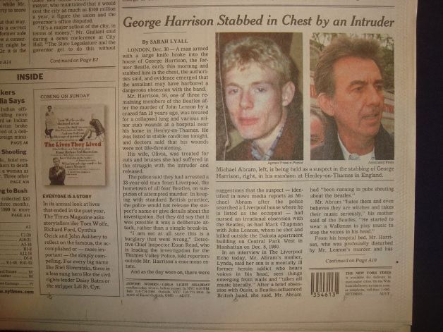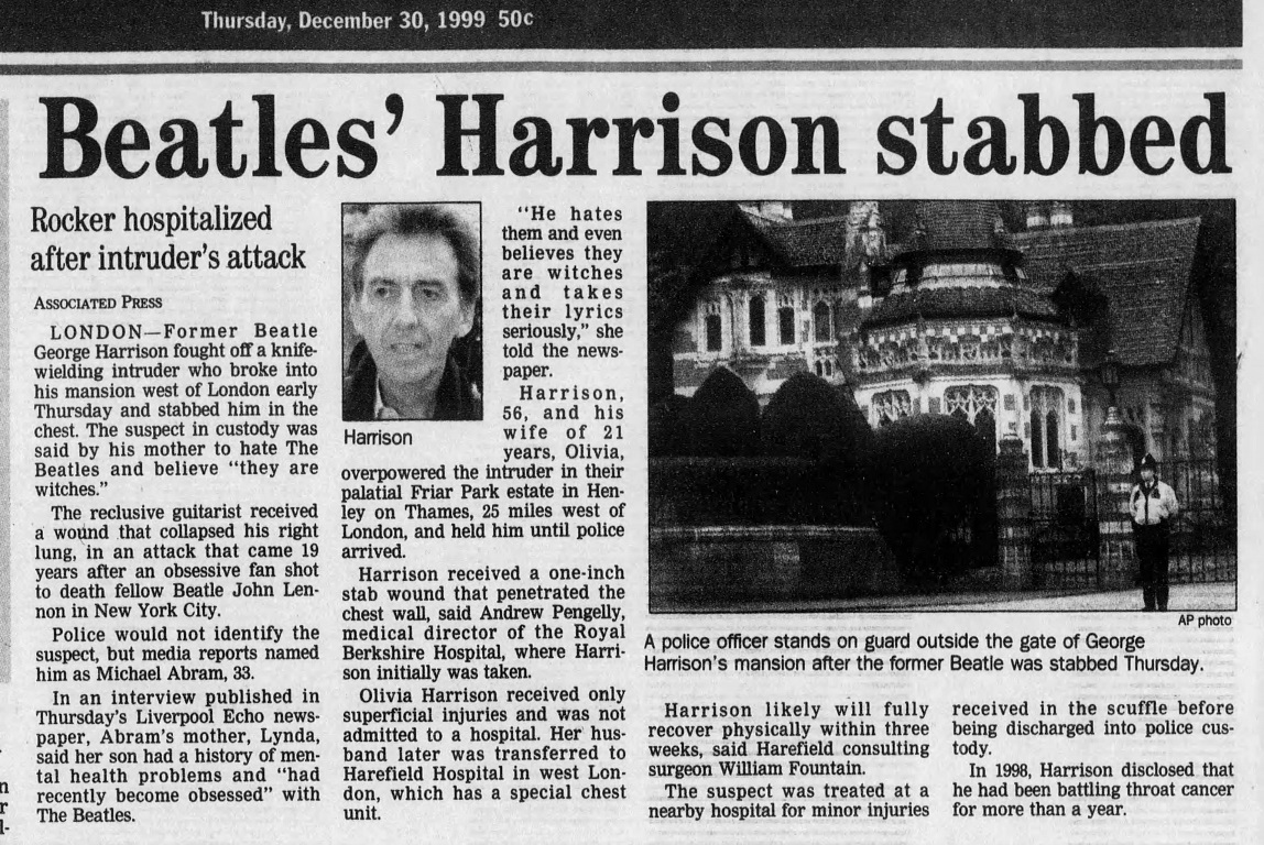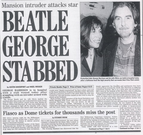 - 1999: George Harrison is stabbed by an intruder at his home