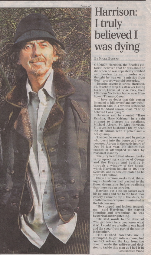 15th anniversary of the George Harrison stabbing today.
