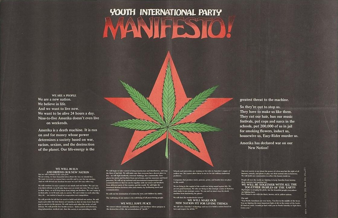 "We are a people. We are a new nation," YIP's New Nation Statement said of the burgeoning hippie movement. "We want everyone to control their own life and to care for one another... We cannot tolerate attitudes, institutions, and machines whose purpose is the destruction of life, the accumulation of profit."