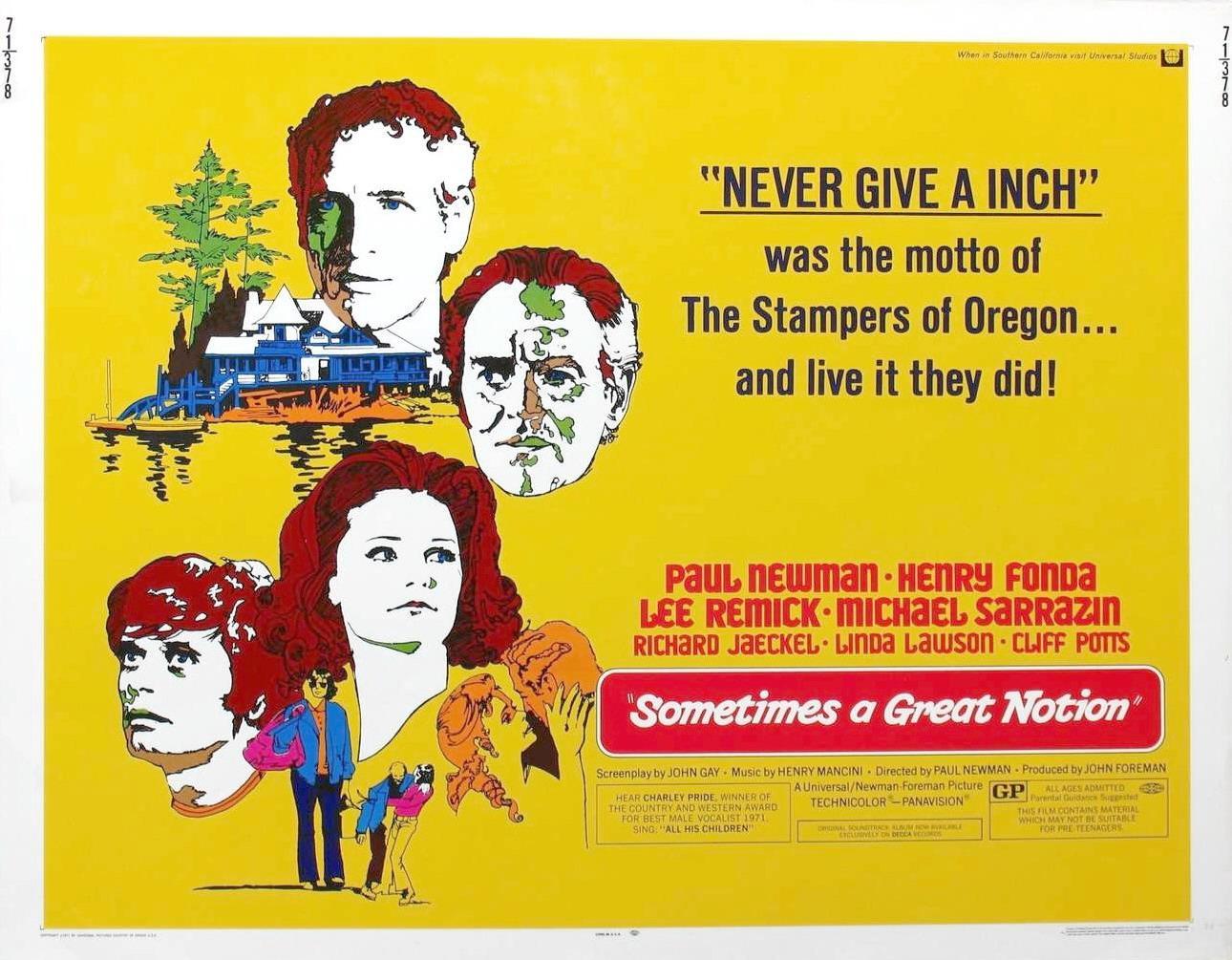 Sometimes A Great Notion (a.k.a. Never Give An Inch ) is a 1971 American drama film directed by Paul Newman and starring Newman, Henry Fonda and Lee Remick. The screenplay by John Gay is based on the 1964 novel of the same title by Ken Kesey, the first of his books to be adapted for the screen. Filmed in the summer of 1970, it was released that New Year's Eve.