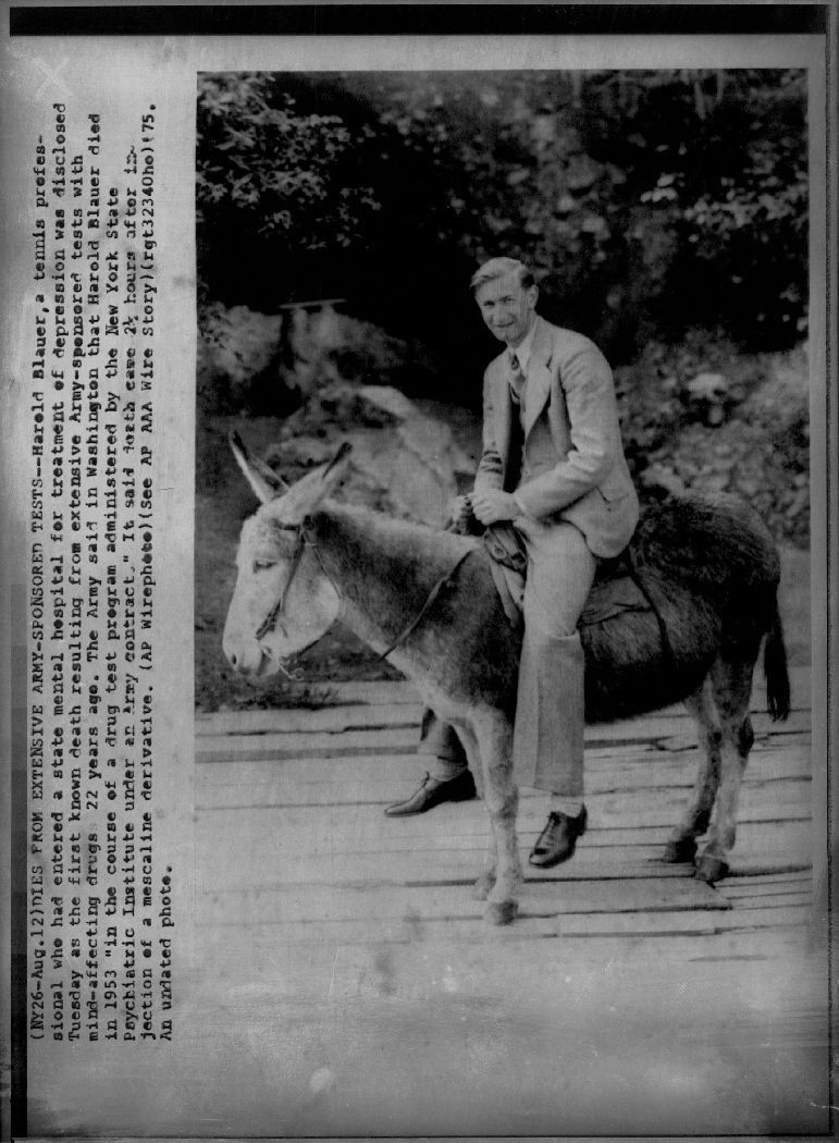 Harold Blauer (1910 – January 8, 1953) was an American tennis player who died as a result of injections of 450 mg 3,4-Methylenedioxyamphetamine (code-named EA-1298) as part of Project MKULTRA, a covert CIA mind-control and chemical interrogation research program, run by the Office of Scientific Intelligence.