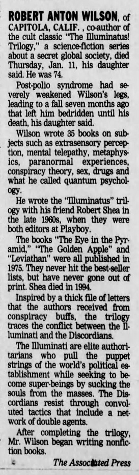- 2007: Robert Anton Wilson dies