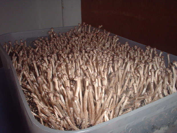 He didn't allow the casing layer to colonise much of the 'peaks and valleys' before the cold shock; he did this in hopes of getting less but bigger fruits. This technique works with cubies as well. Another thing we will keep an eye on is the speed of growth. Last tray, with literally hundreds of tiny mushrooms took almost two weeks to mature. I have a feeling that these will not take as long. I will elaborate if this turns out to be so.