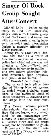 - 1969: The Doors "Miami Incident" takes place