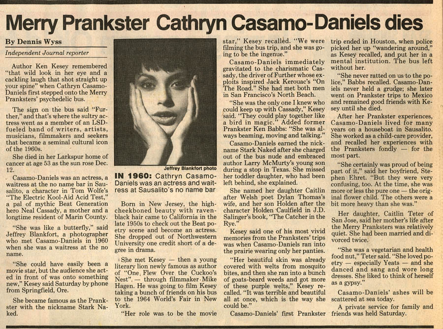- 1992: Merry Prankster Cathryn Casamo aka Stark Naked dies