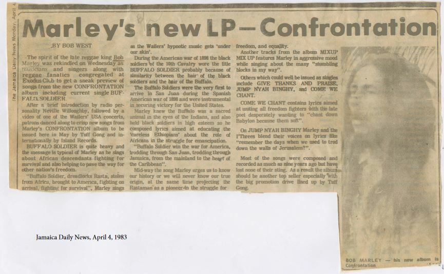 - 1983: The album Confrontation by Bob Marley & The Wailers is posthumously released