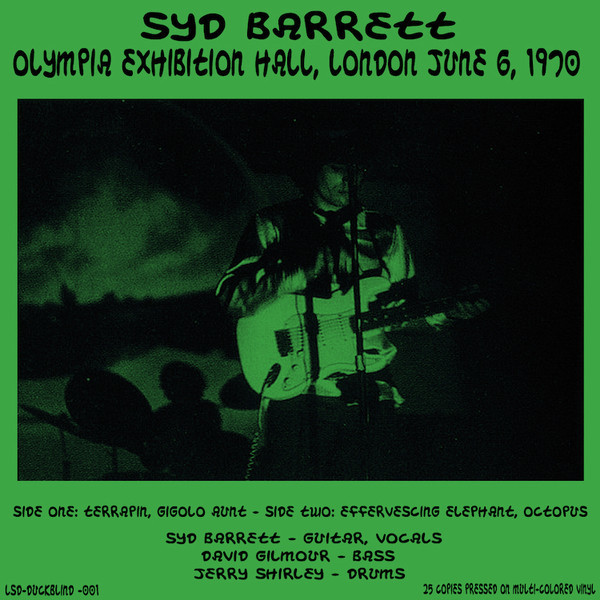 After Pink Floyd famously failed to pick Syd up for a gig one day, thereby effectively beginning the process of dropping him as the frontman for the band he helped to form, Syd embarked on a solo career which would last for all of two albums: The Madcap Laughs and Barrett, both of which were released in 1970. (An odds-and-sods collection entitled Opel would eventually emerge, but by that point Syd had long since slipped into a self-imposed retirement from music which would last until his death in 2006.) It was between the release of The Madcap Laughs in January and Barrett in November that Syd performed at the Music and Fashion Festival in Kensington, Olympia, singing and playing guitar while Jerry Shirley played drums and his old pal David Gilmour played bass.