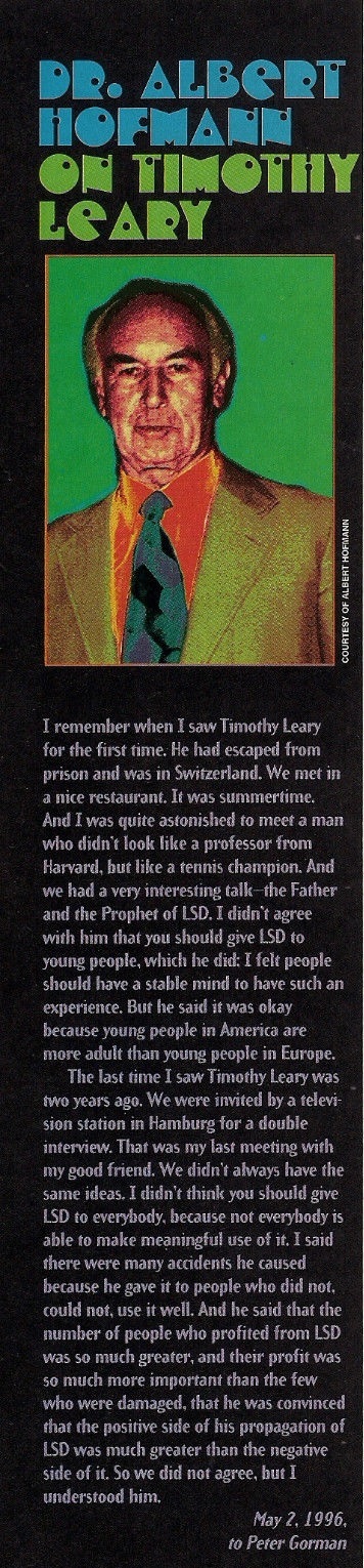 - 1971: Albert Hofmann meets Timothy Leary for the first time