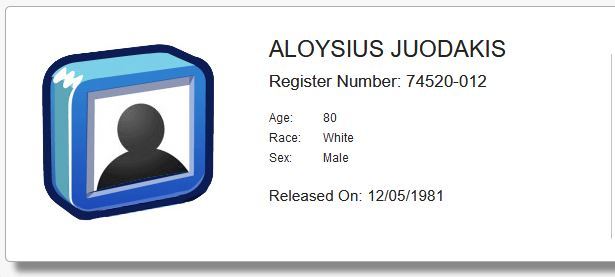 ALOYSIUS JUODAKIS Register Number: 74520-012 Age: 83 (as of 2020) Race: White Sex: Male Released On: 12/05/1981