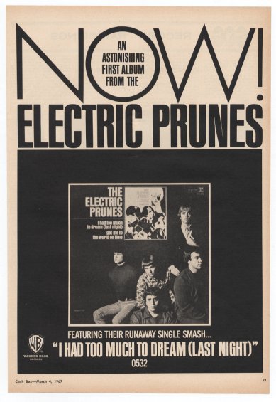 Supposedly it's the 55th anniversary of The Electric Prunes' "I Had Too Much To Dream (Last Night)" single today.