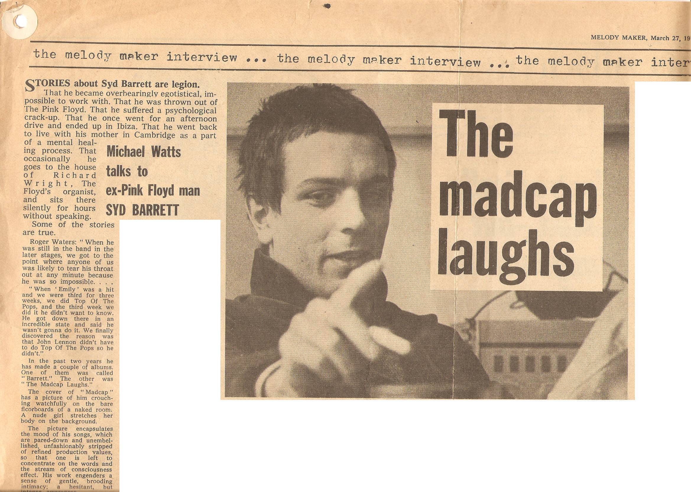 - 1970: Syd Barrett releases his debut solo album Madcap Laughs