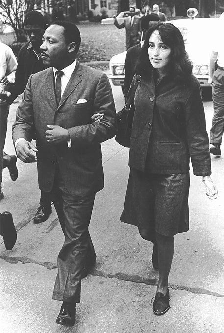 Baez joined King on his 1965 march from Selma to Montgomery, Alabama, singing for the marchers in the town of St. Jude, Alabama, as they camped the night before arriving in Montgomery. She linked arms with King to protect African-American schoolchildren in Grenada, Mississippi who were trying to attend "white" schools.