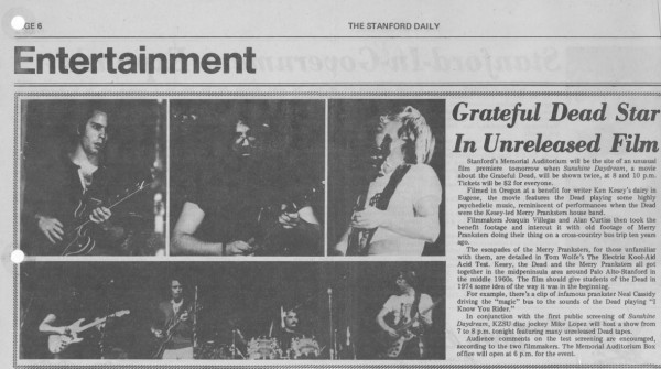 - 1972: The Grateful Dead's "Sunshine Daydream" movie concert takes place